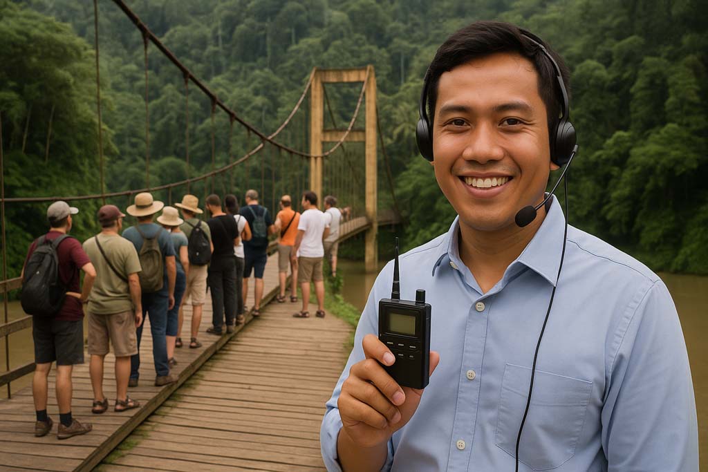 Interpreter kami berpengalaman berinteraksi dengan audiens dari berbagai latar belakang sosial dan budaya. Mereka mampu menyampaikan pesan dengan bahasa yang mudah dipahami namun tetap akurat. Alat kami bekerja stabil di lokasi luar ruangan seperti desa binaan atau balai komunitas. Kami juga mendampingi tim CSR dari persiapan hingga pelaksanaan, termasuk uji coba sistem dan briefing teknis. Komunikasi yang baik adalah kunci keberhasilan dan penerimaan program di tingkat masyarakat.